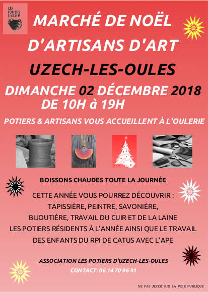 Cette manifestation ce déroulera le Dimanche 01 décembre 2019 de 10h à 19h à L'Oulerie d'Uzech des boissons chaudes seront servis tout au long de la journée...